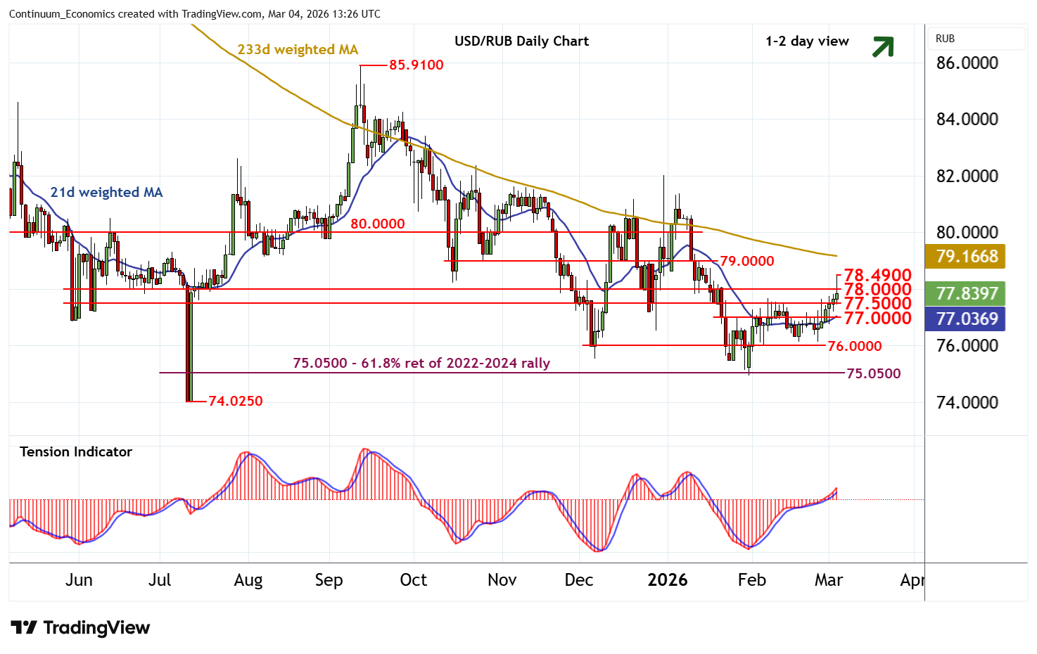 | R2 | 78.4900 | * | 3 Mar high | S3 | 76.0000 | * | congestion | |