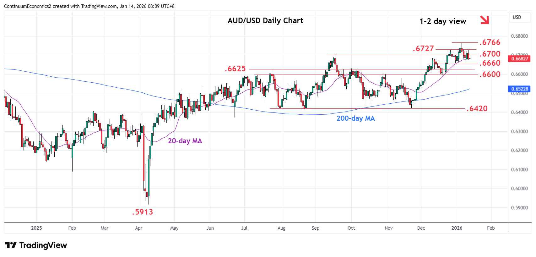 Chart AUD/USD Update: Choppy in consolidation above .6660 support