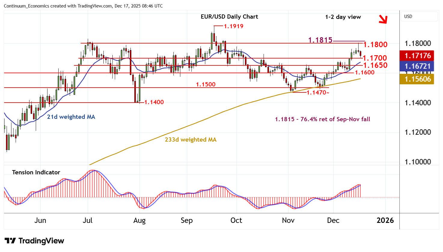 Chart EUR/USD Update: Sharp pullback from 1.1800/15