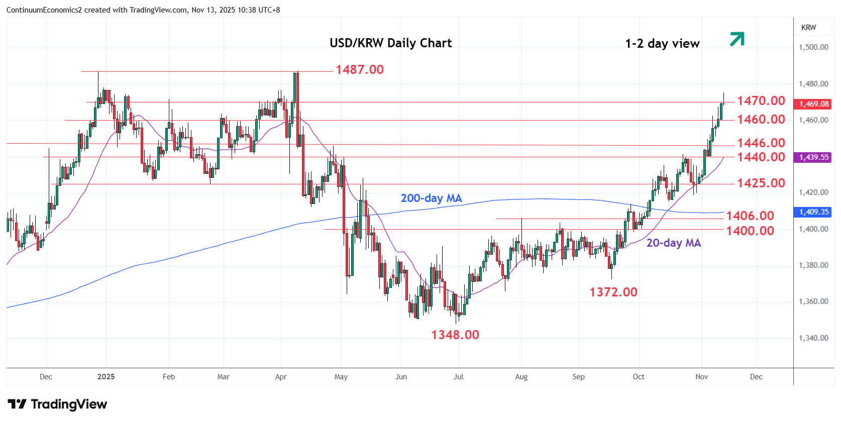Chart USD/KRW Update: Lower in consolidation from 1475.00 high