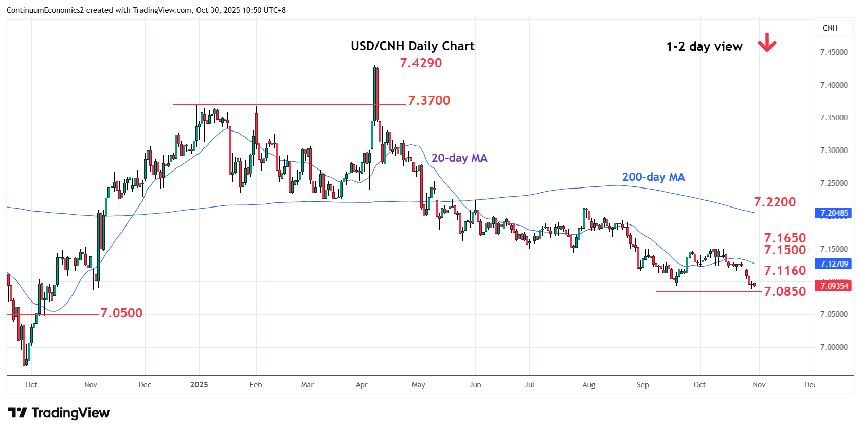 Chart USD/CNH Update: Consolidating above 7.0850 low