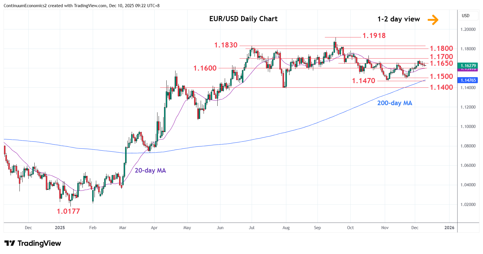 Leaning lower from the 1.1682 high as prices consolidate gains from the 1.1470/1.1500 November lows