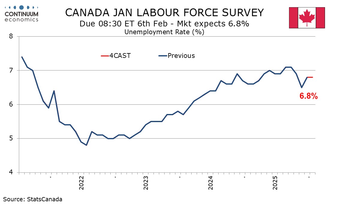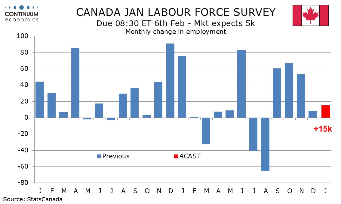 Preview: Due February 6 - Canada January Employment - A second straight subdued month after three strong ones