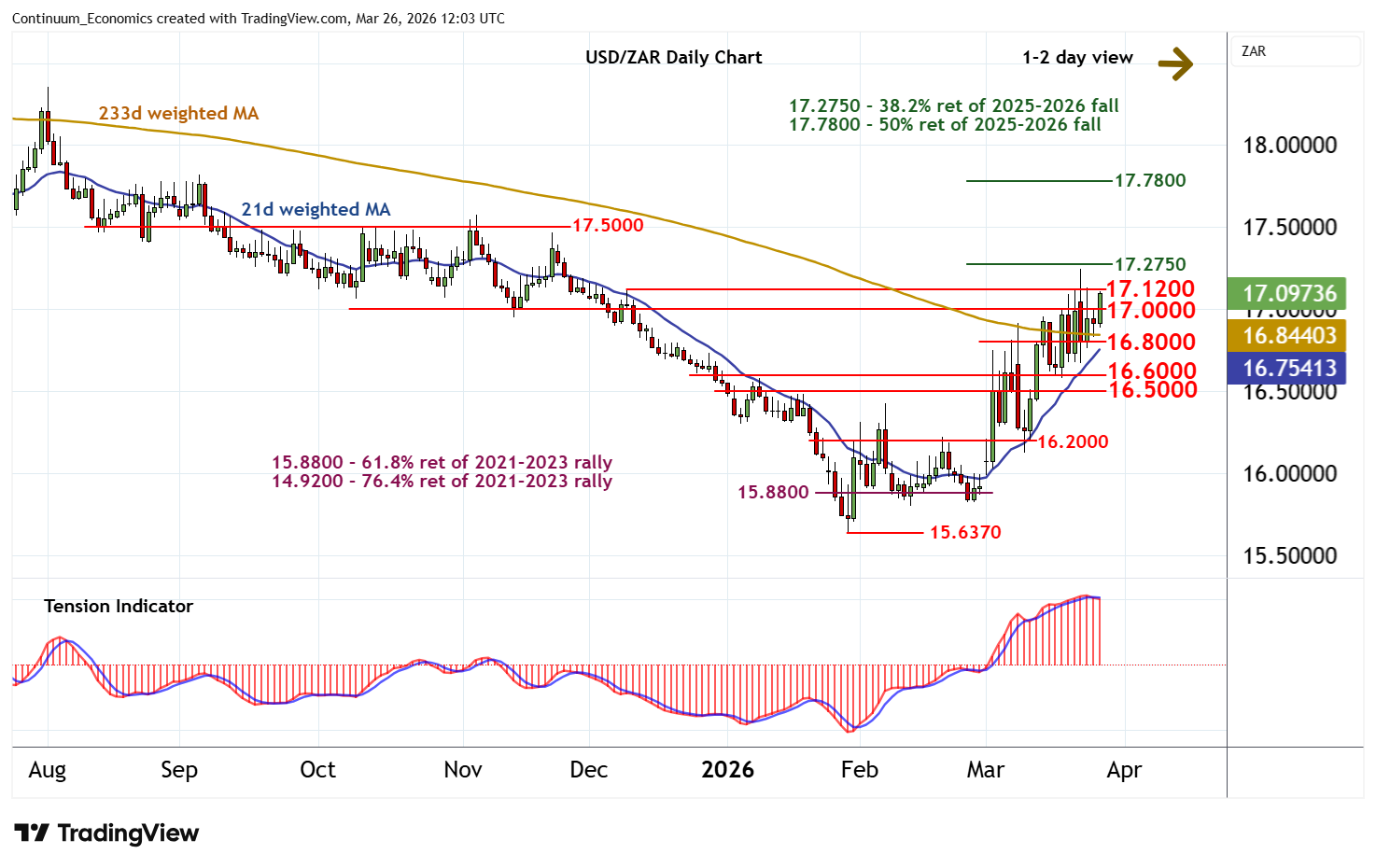 Chart USD/ZAR Update: Strong resistance at the 17.2750 Fibonacci retracement