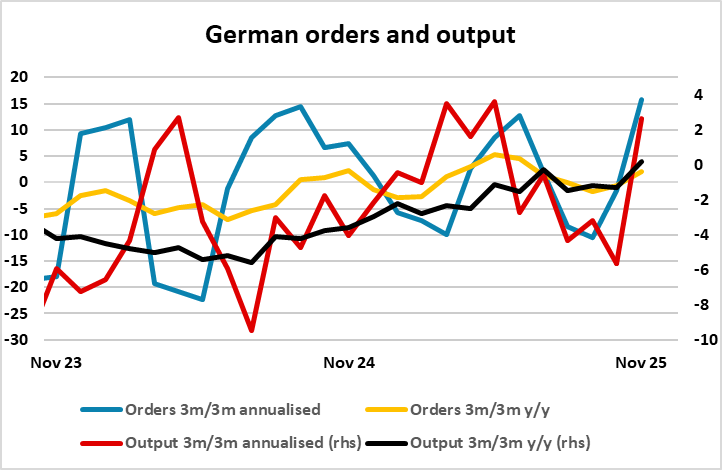 German industrial production has also come in stronger than expected in November, following Thursday’s strong orders data. The underlying trend looks to be turning clearly more positive, and should be mildly supportive for the EUR. The USD is generally firmer overnight, but this data should help EUR/USD find support above 1.16 provided that the US employment numbers aren’t significantly stronger than expected today.