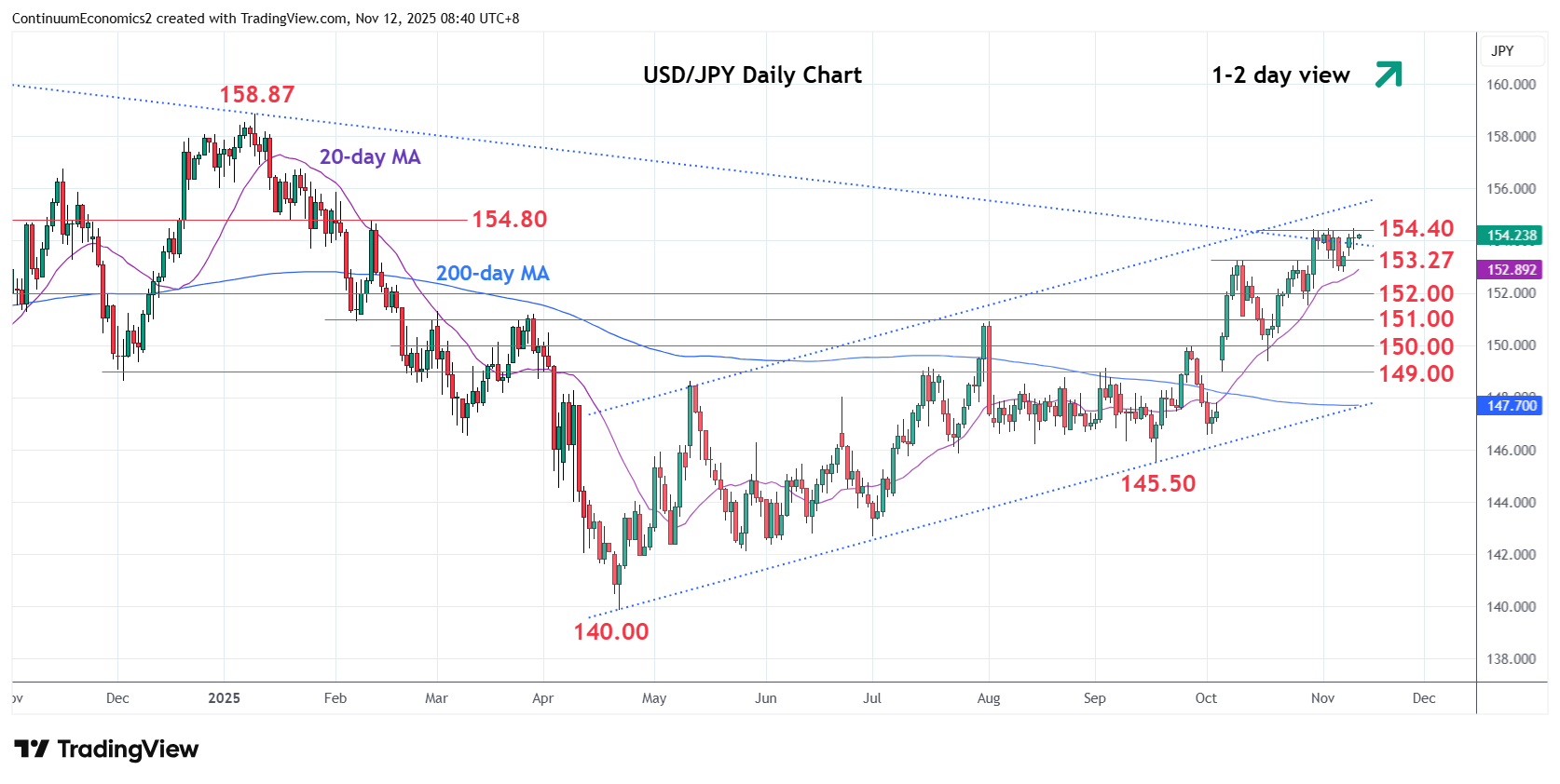 Chart USD/JPY Update: Pressuring 154.40/48 highs