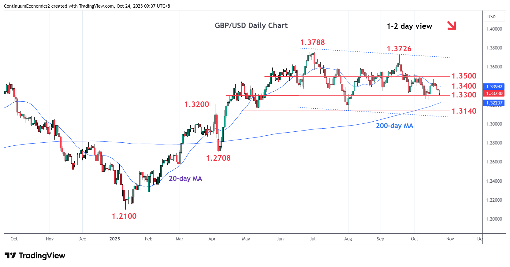 Extending consolidation just above the 1.3300 level but pressure remains on the downside