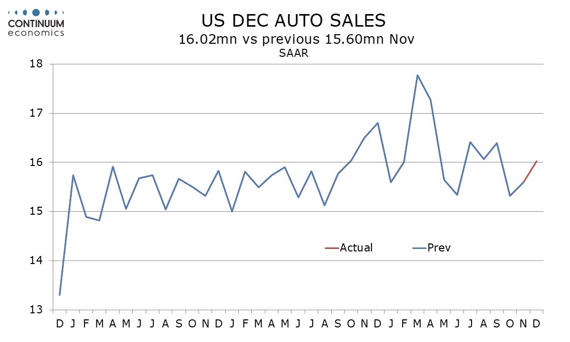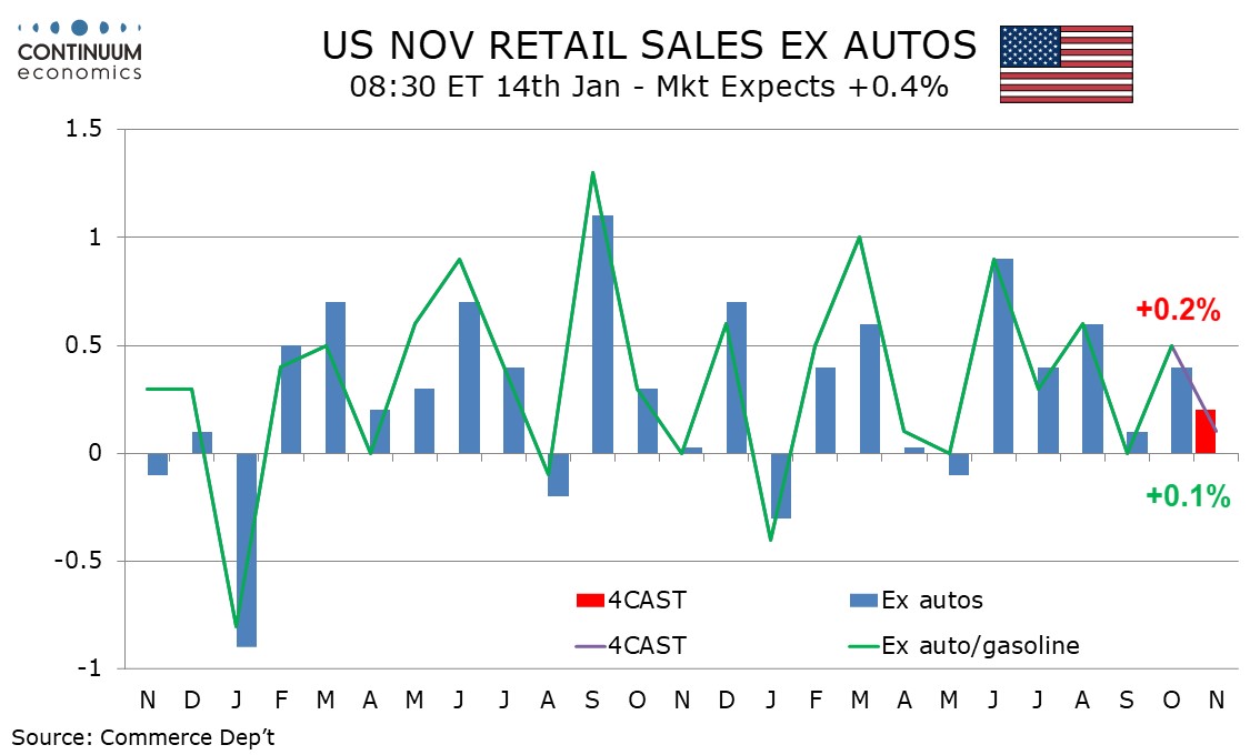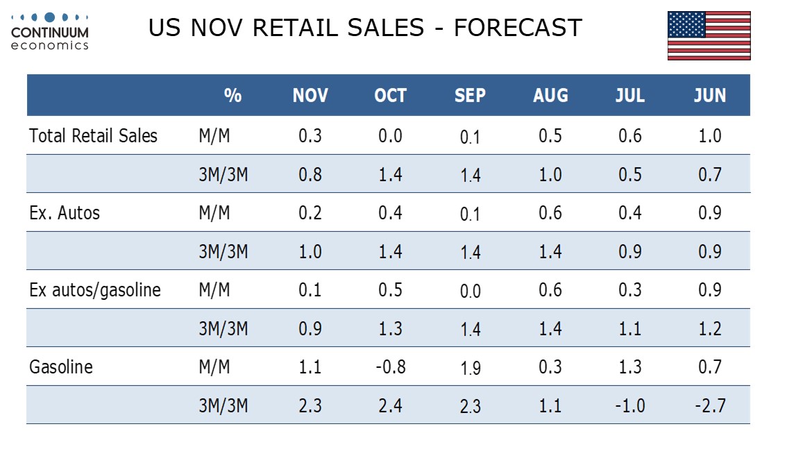 Overall sales with a 0.3% increase will be stronger than a flat October and a 0.1% increase in September, though that will leave three straight subdued months. However, with indications for December even ex autos somewhat firmer, the loss of momentum in Q4 looks set to be moderate.