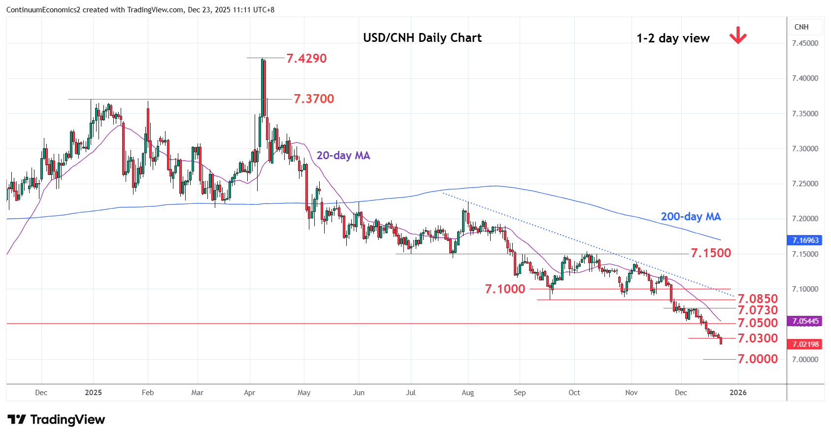 Chart USD/CNH Update: Extending losses, focus turn to 7.0000 figure