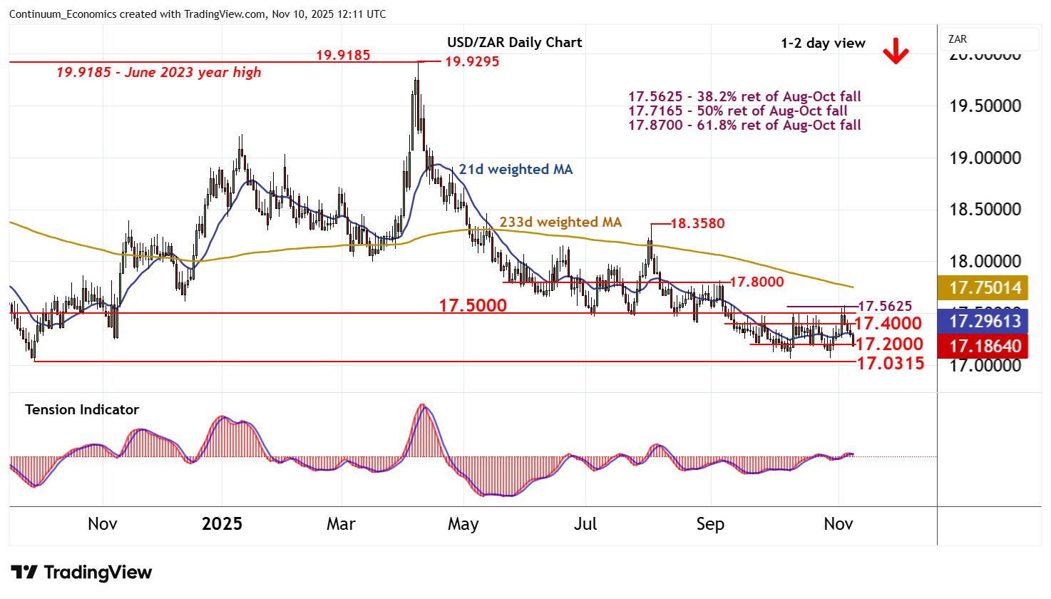 12:00 GMT - Choppy trade beneath congestion resistance at 17.4000 has given way to the anticipated pullback, as intraday studies turn down, with prices currently trading just below congestion support at 17.2000. Daily readings are under pressure, highlighting room for continuation down to critical support at the 17.0630 current year low of 9 October and the 17.0315 year low of 30 September 2024. But mixed weekly charts should limit any initial tests of this range in further consolidation, before bearish longer-term readings prompt a break. A close beneath here will add weight to sentiment and confirm continuation of May 2023 losses. Meanwhile, resistance remains at congestion around 17.4000 and extends to 17.5000. This range should cap any immediate tests higher.
