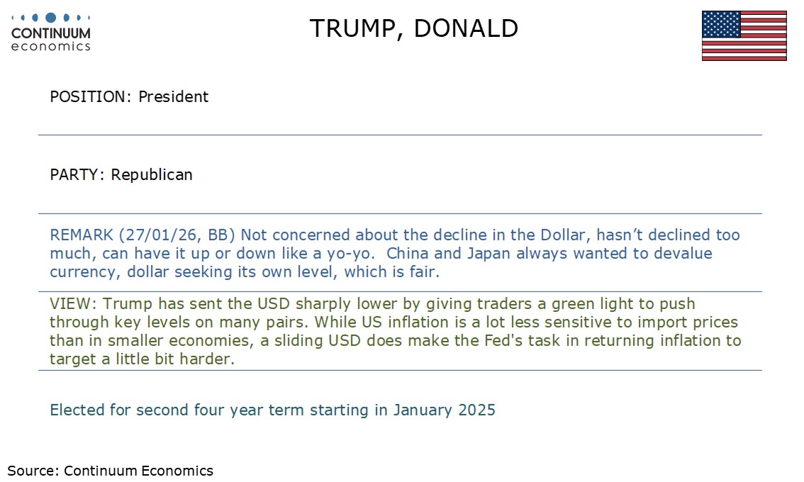 Trump, seeking to boost US export competitiveness, has encouraged USD sellers, but the comments carry risks for inflation.