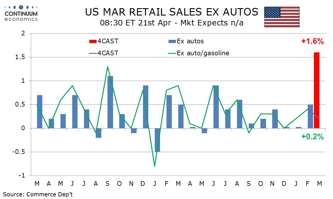 Preview: Due April 21 - U.S. March Retail Sales - Surge on gasoline prices, underlying trend subdued