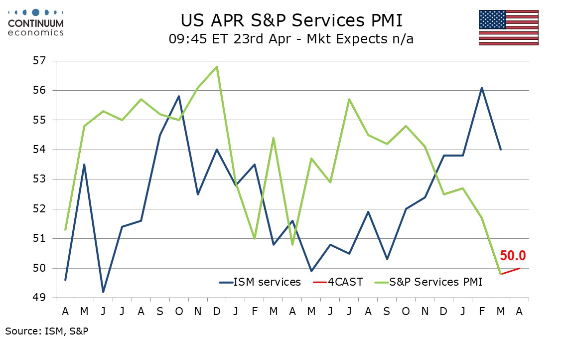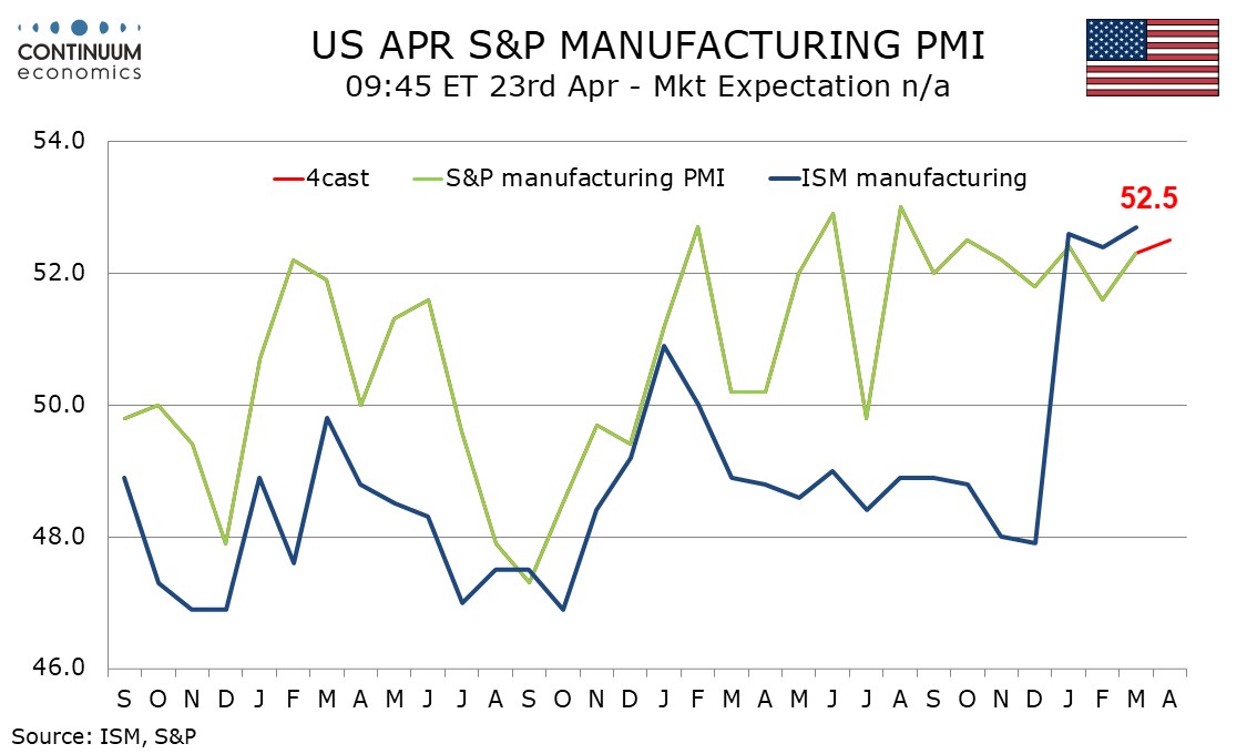 Preview: Due April 23 - U.S. April S and P PMIs - Slightly firmer despite Middle East risk