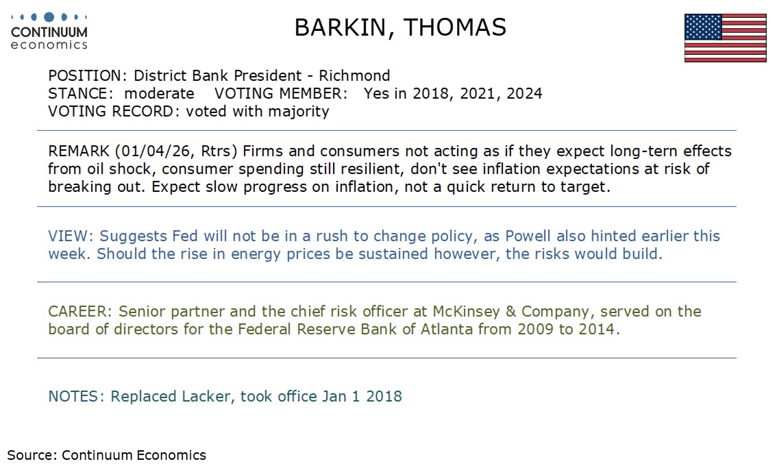 Fed's Barkin is hoping that the oil shock will prove a short term problem.