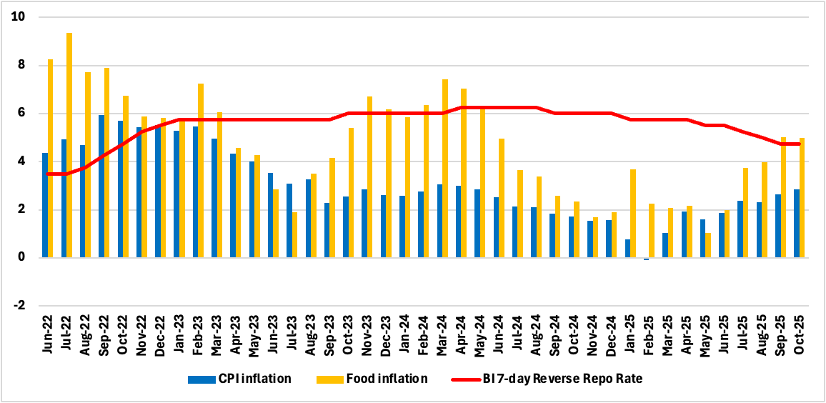 Figure 1: Indonesia CPI, Food Inflation and Main Policy Rate (%)