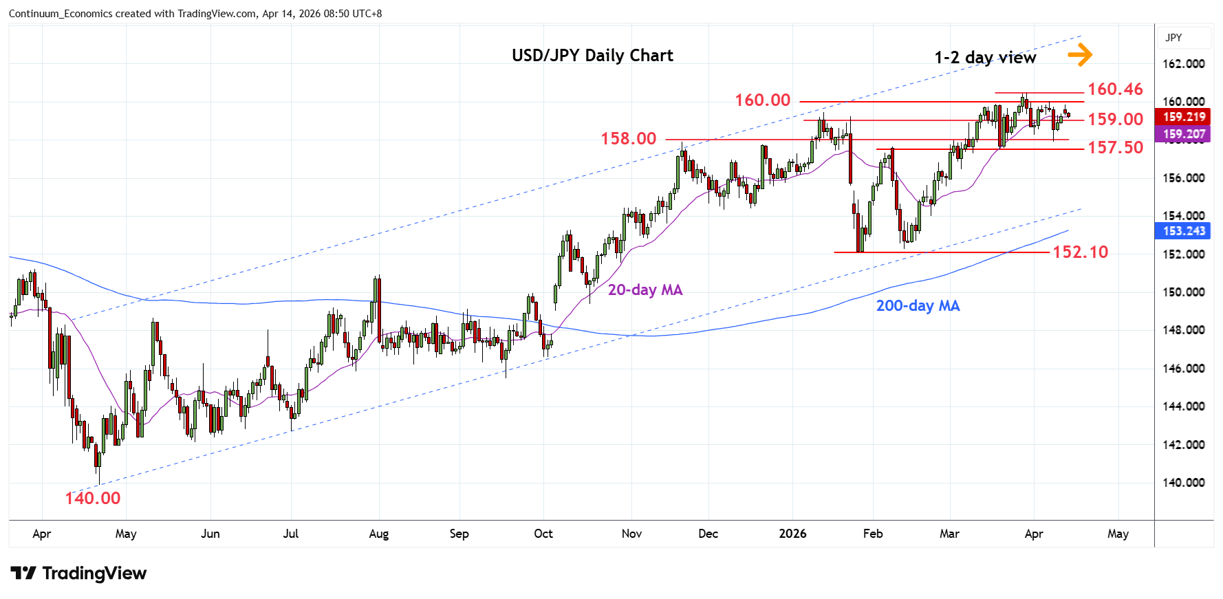 Chart USD/JPY Update: Lower in consolidation beneath 160.00