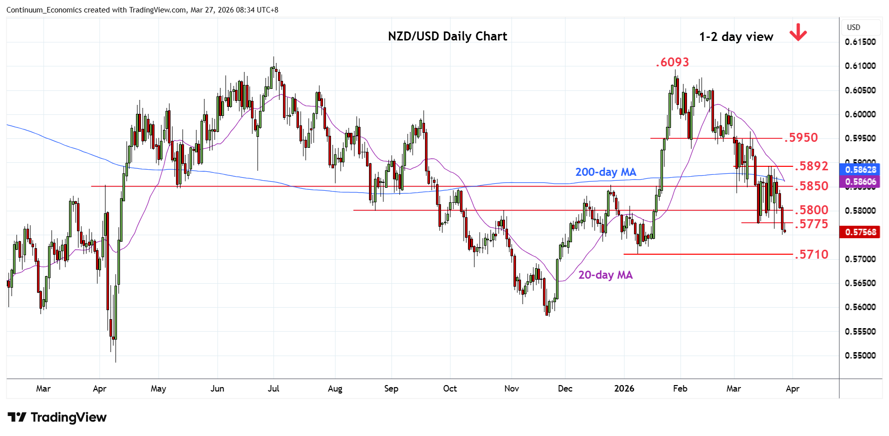Chart NZD/USD Update: Still heavy, room to .5710 January low