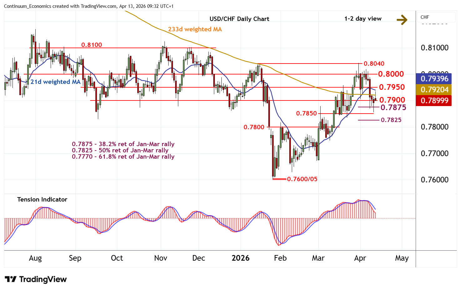 | R1 | 0.7950 | * | congestion | S4 | 0.7825/35 | 50% ret; 23 Mar (w) low |
