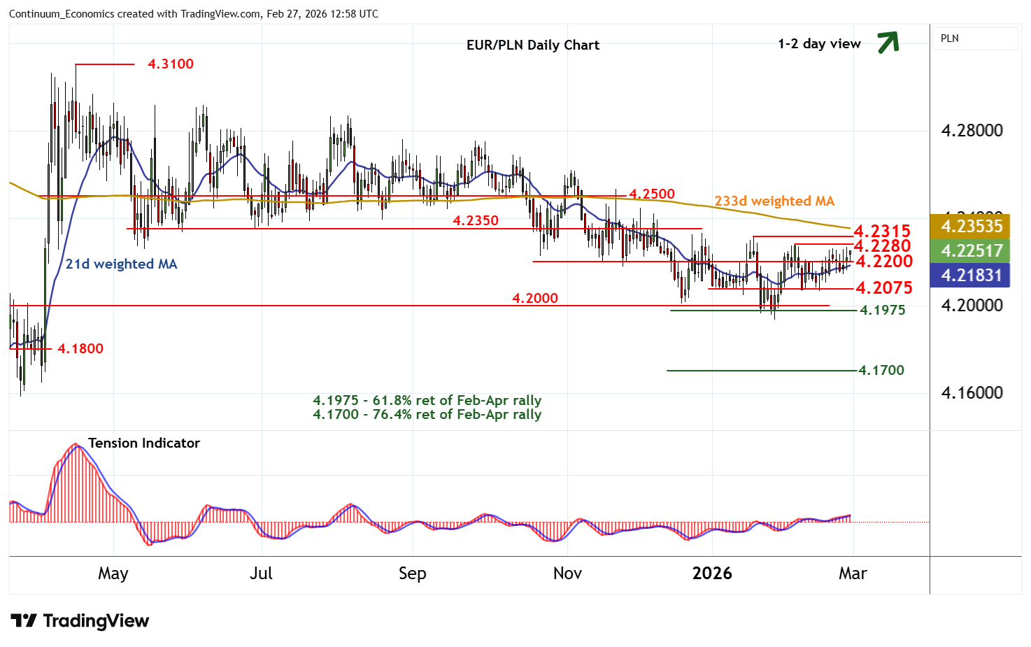 Still little change, as prices extend cautious/choppy trade beneath resistance at the 4.2280 weekly high of 5 February