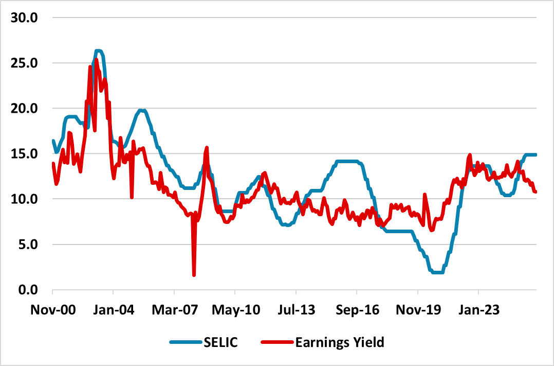 Figure 5: Brazil 12mth Fwd Earnings Yield-10yr Nominal government Bond Yield (%)