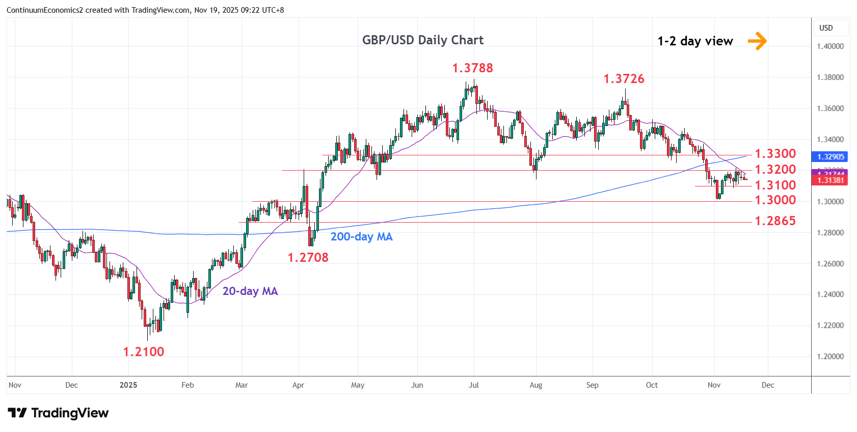 | R3 | 1.3300/24 | ** | congestion, Sep low | S2 | 1.3010/00 | ** | 4 Nov low, congestion | |