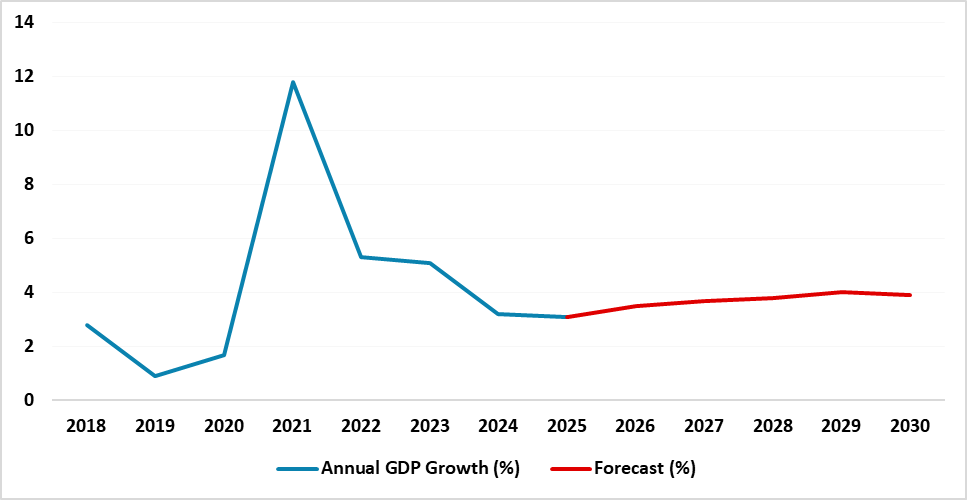 Figure 1: Turkiye GDP Growth Forecasts to 2030 (%)
