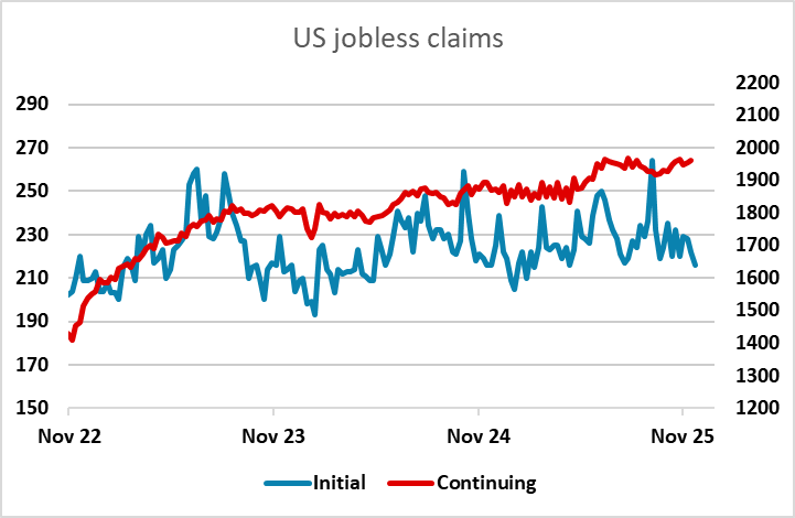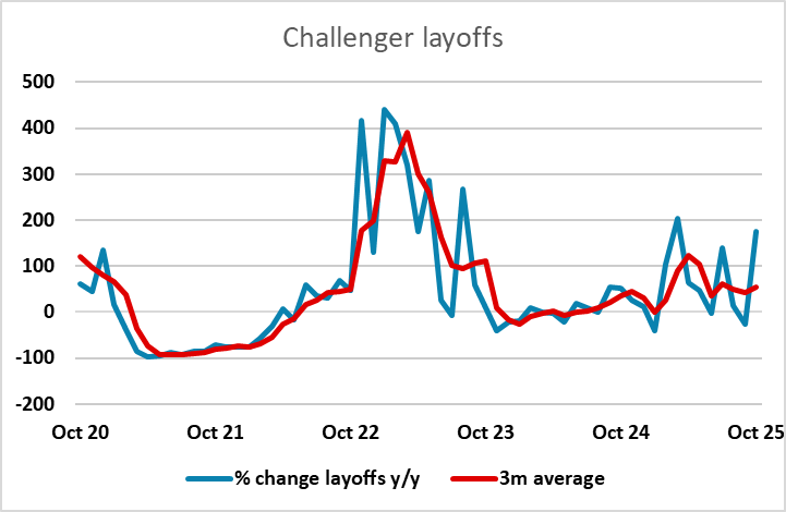 US jobless claims data on Thursday follows on from the somewhat weaker than expected November ADP data on Wednesday as the next measure of US labour market health, while there is also the Challenger layoffs data which follows on from a sharp rise in October that caused something of a stir. The claims data have so far seen initial claims holding at low levels but continuing claims near recent highs, which suggest that the October Challenger data was an anomaly and we should see a dip in November. The 3 month average of the Challenger data is quite stable despite October’s rise.