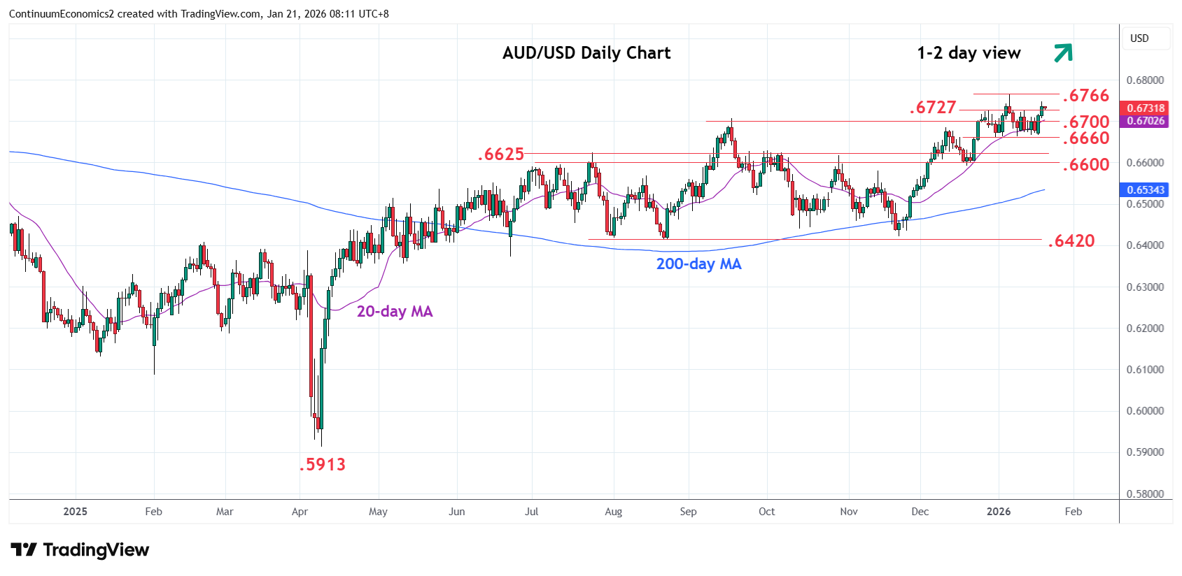 Chart AUD/USD Update: Extending gains, room to retest .6766 high