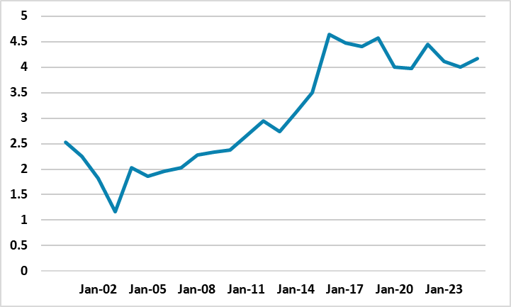 · Oil. The U.S. is keeping pressure on the Venezuelan oil industry via sanctions and intermittent blockades, which could see the new Venezuelan president conceding ground. However, Iraq experience after 2003 is illustrative of the challenges that Venezuela faces with decaying infrastructure that needs large scale investment to boost oil output back to the 3-4mln barrels per day of Venezuela glory days. Additionally, sources close to U.S. oil companies have already expressed a precondition of stable politics including new parliamentary elections. Iraq took until 2010 for production to really take off (Figure 1), which suggests that Venezuela oil really ramp up could be beyond the 2026-27 period – though some rebound is feasible from current depressed levels and would be another worry for oil prices (our Commodity Outlook is here).