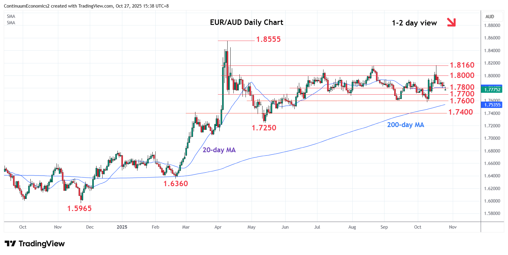 Chart EUR/AUD Update: Extending pullback from 1.8160 high