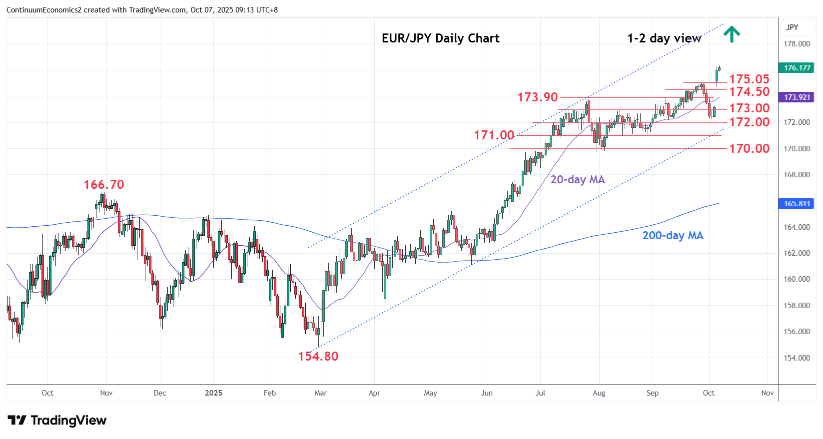 Extending bullish break of the 175.05 September high to reach fresh high above 176.00 level