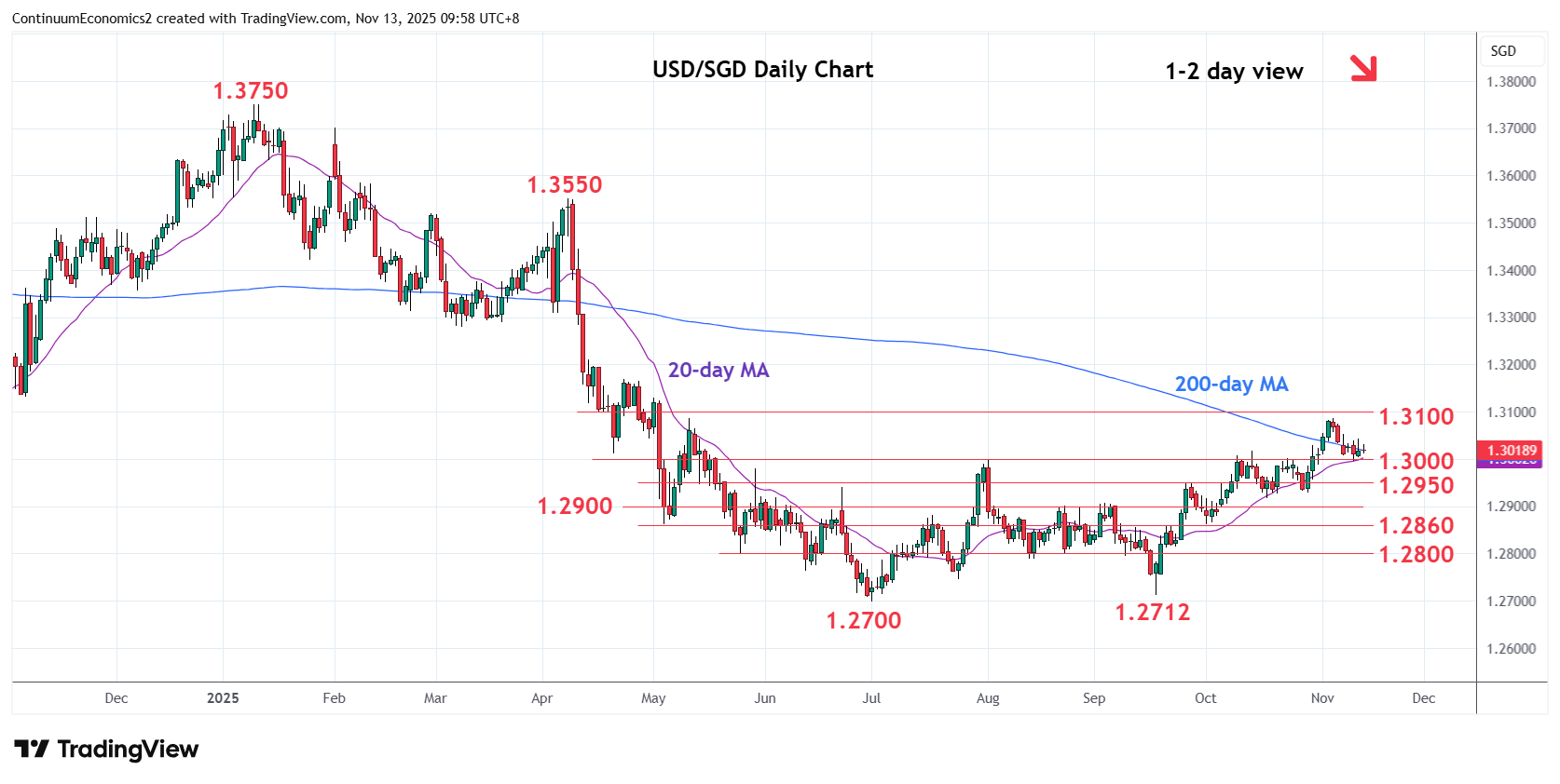 Chart USD/SGD Update: Consolidating at 1.3000, room for lower later