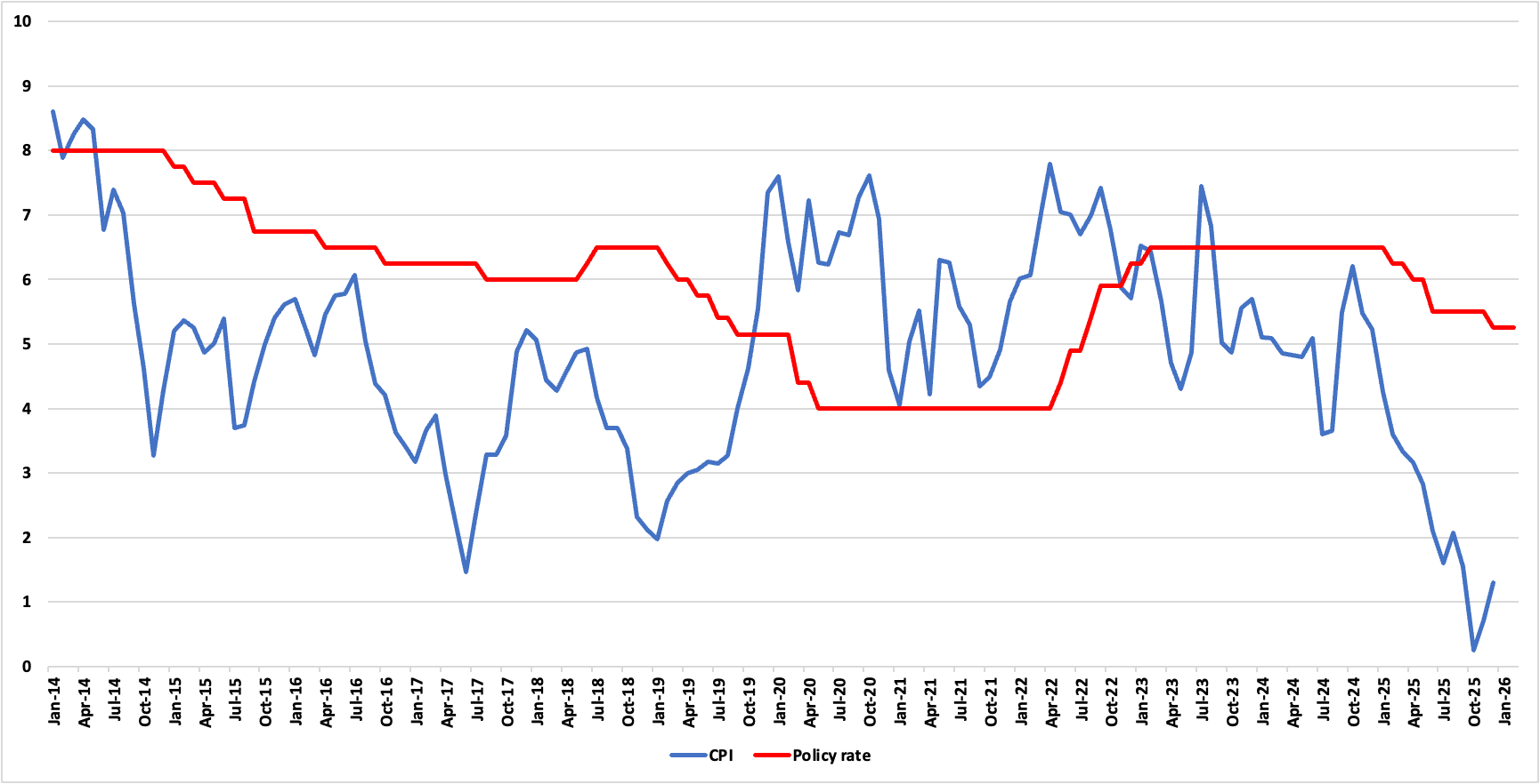 Figure 1: India CPI and Policy Rate (%)