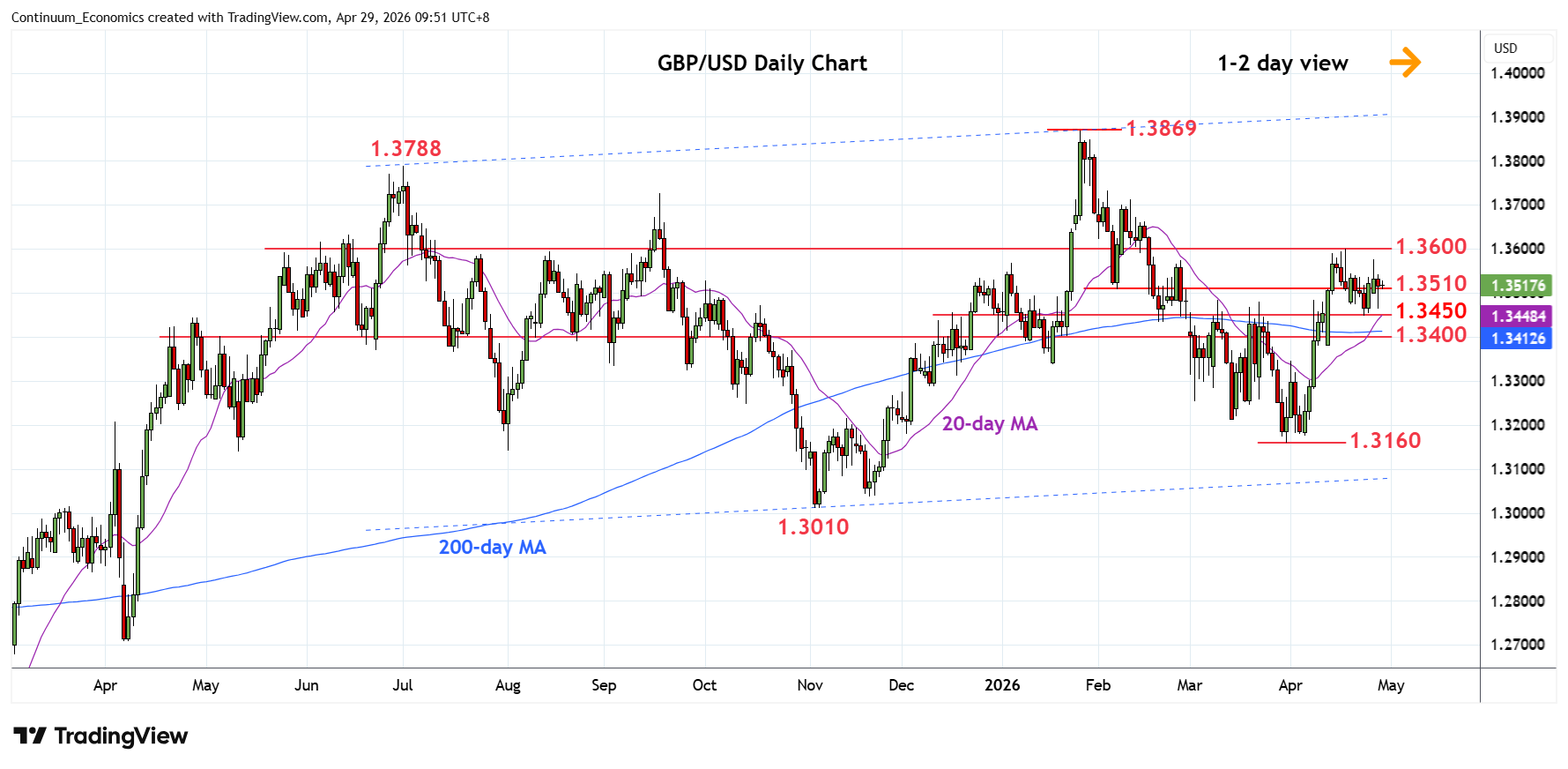 Chart GBP/USD Update: Extend consolidation above 1.3450 support