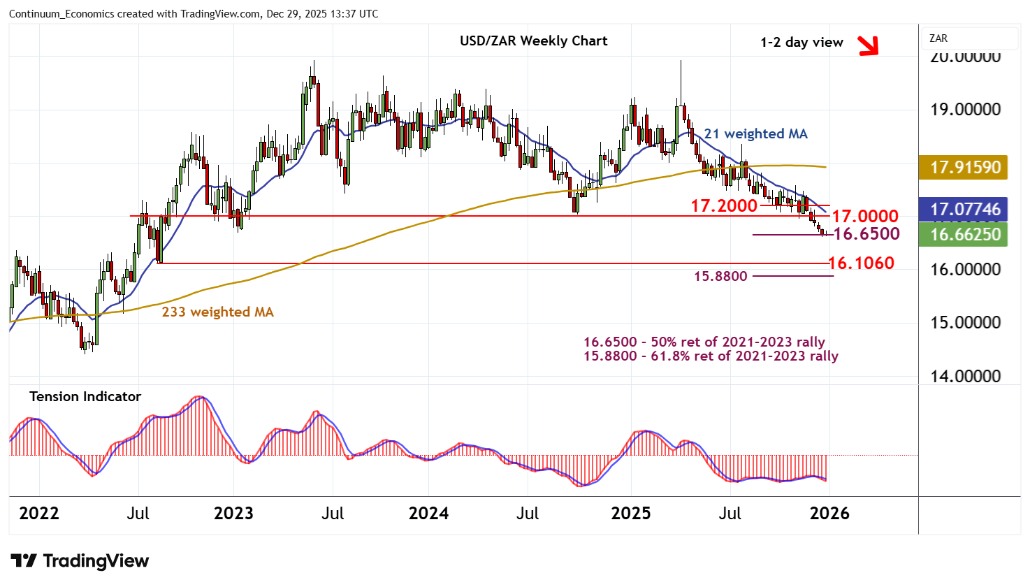13:15 GMT - Anticipated selling interest has posted as fresh 2025 year low around 16.6100, before settling into fresh consolidation around the 16.6500 Fibonacci retracement. Negative daily studies are flattening, suggesting potential for further sideways trade. But broader weekly charts and longer-term readings are mixed/negative, highlighting room for still deeper losses in the coming sessions. A close below 16.6100 - 16.6500 will add weight to sentiment and extend April losses towards the 16.1060 low of August 2022. Meanwhile, resistance is lowered to the 16.8000 break level and extends to congestion around 17.0000. This range should cap any immediate tests higher.