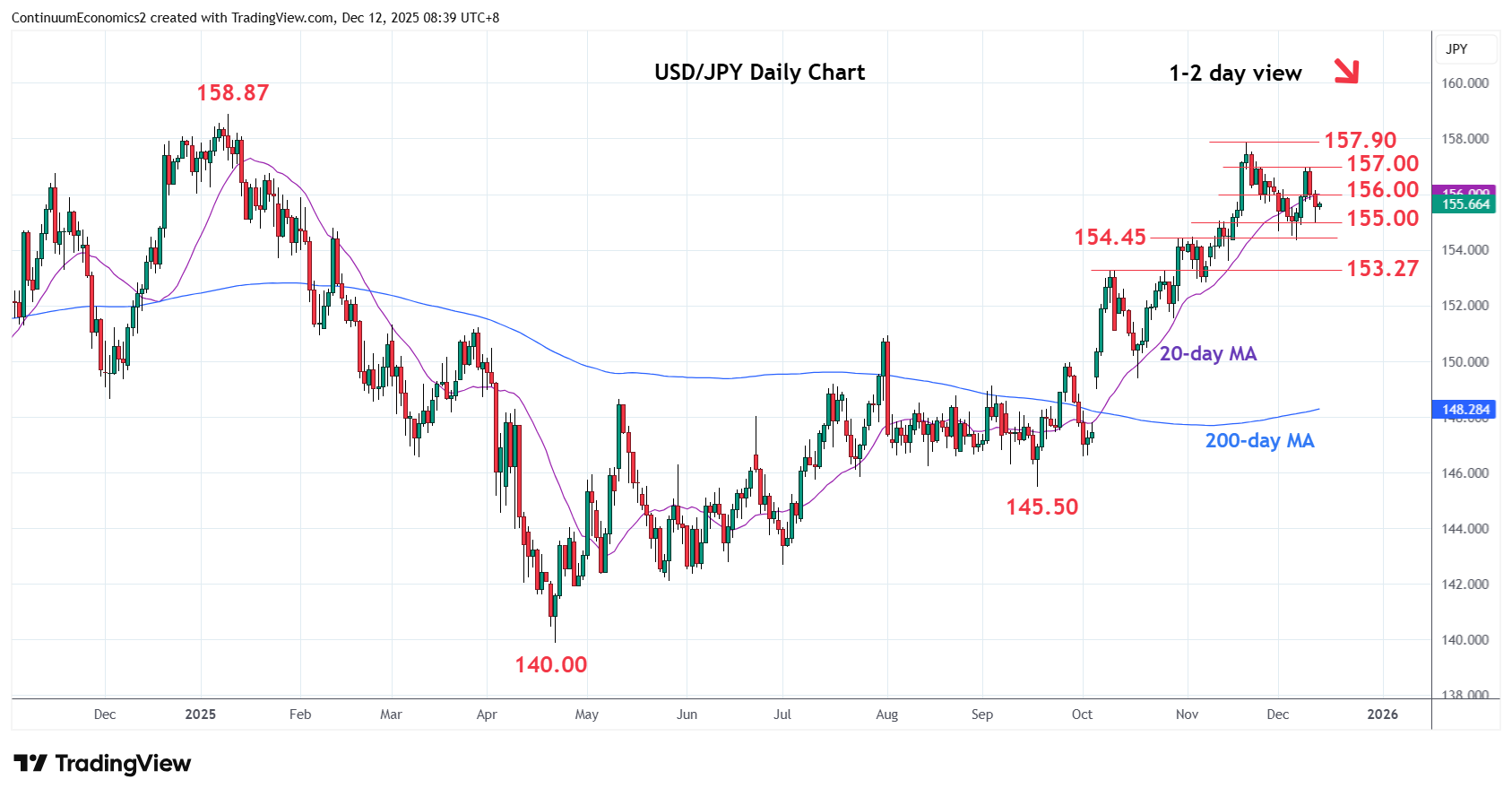 | R2 | 156.95/00 | ** | 9 Dec high, congestion | S3 | 154.00 | congestion | ||