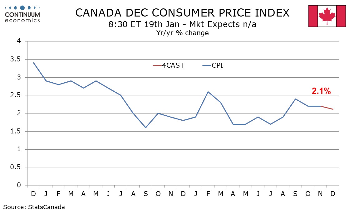 Preview: Due January 19 - Canada December CPI - Slower even with upward tax distortion