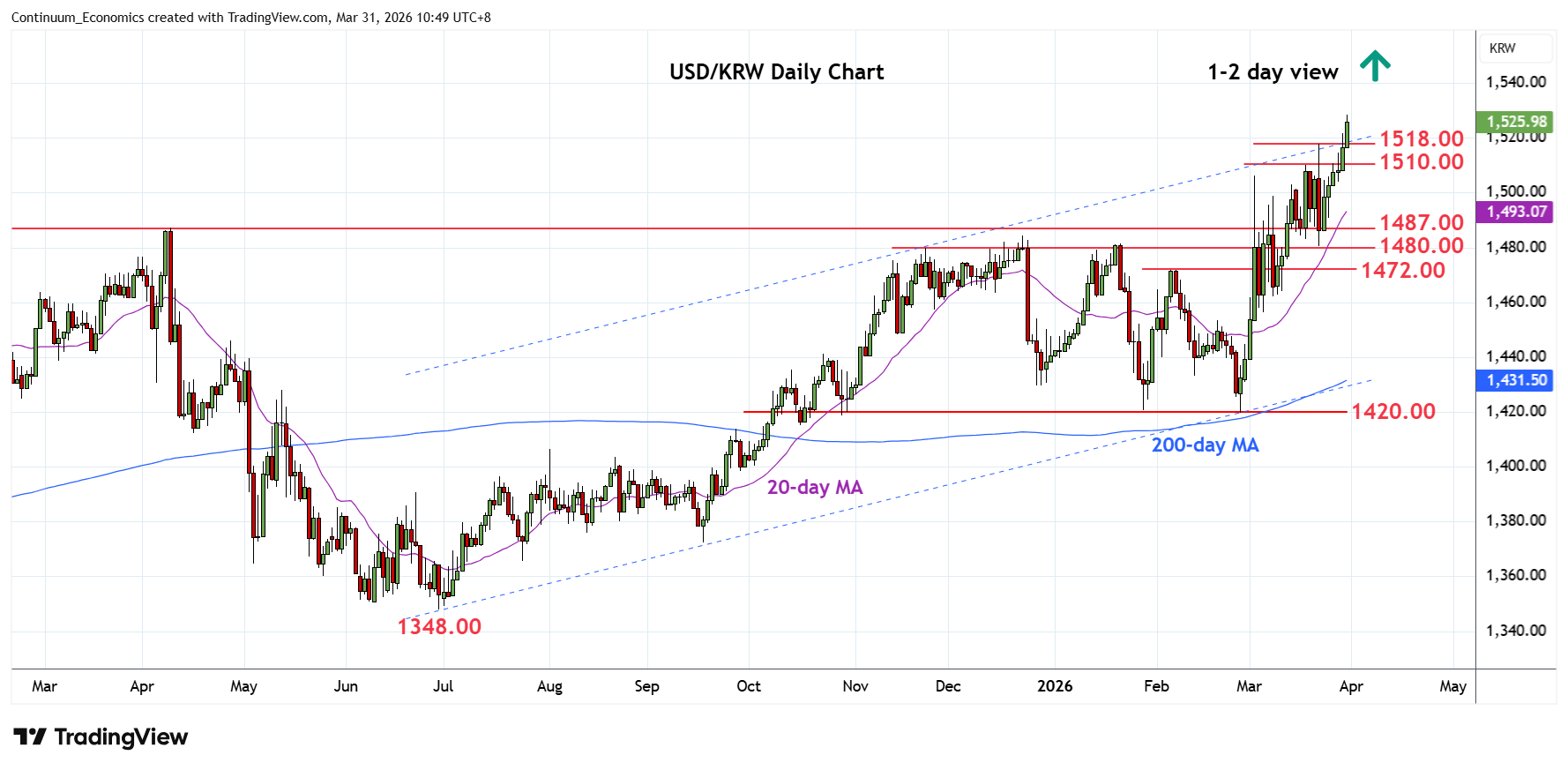 Consolidation below the 1510.00/1518.00 highs has given way to break to reach fresh year high at 1528.00