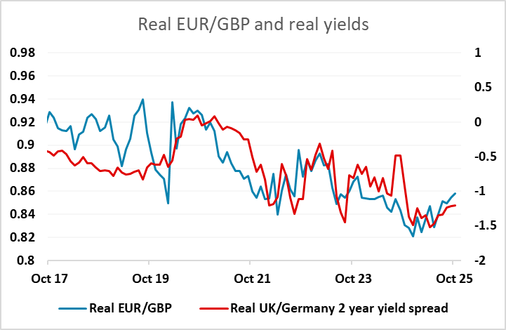 EUR/GBP has remained fairly steady for most of this month, trading an 0.8660-0.8720 range. We still see the risks as being on the upside, but it will require the data to show some further evidence of weakening in the inflation picture if the risks are to be realised. The labour market data earlier in the week were generally seen to be on the soft side, and if the CPI data come in in line with our forecasts, the risks are towards the upside for EUR/GBP. However, even if the data is on the soft side as we expect, it seems unlikely to be enough to trigger a sufficient decline in UK yields to push EUR/GBP above the year’s high at 0.8763. This remains a target, but it may require news from the November budget to trigger a move.