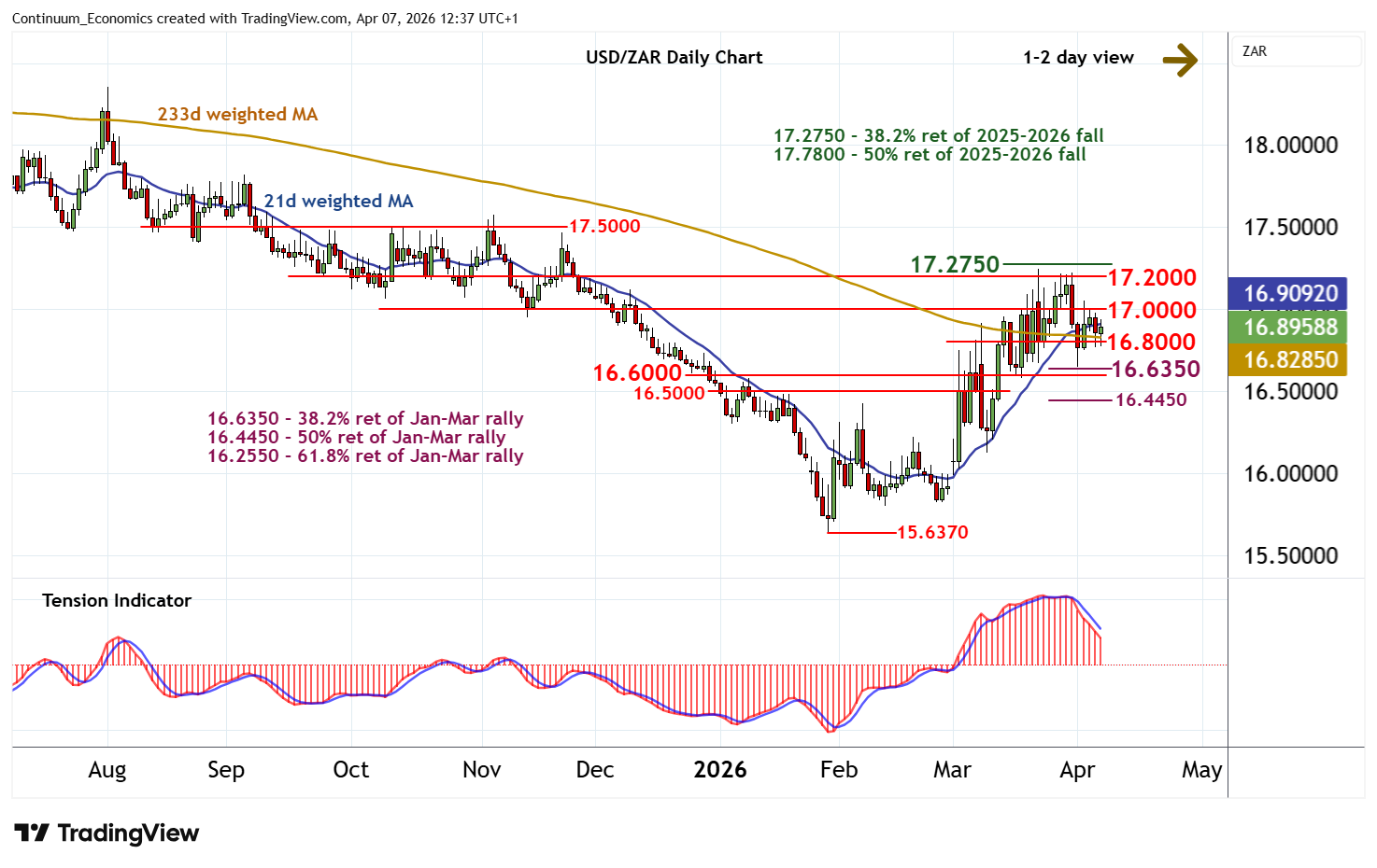 Little change, as mixed intraday studies keep near-term sentiment cautious and extend consolidation within the 16.8000 - 17.0000 range
