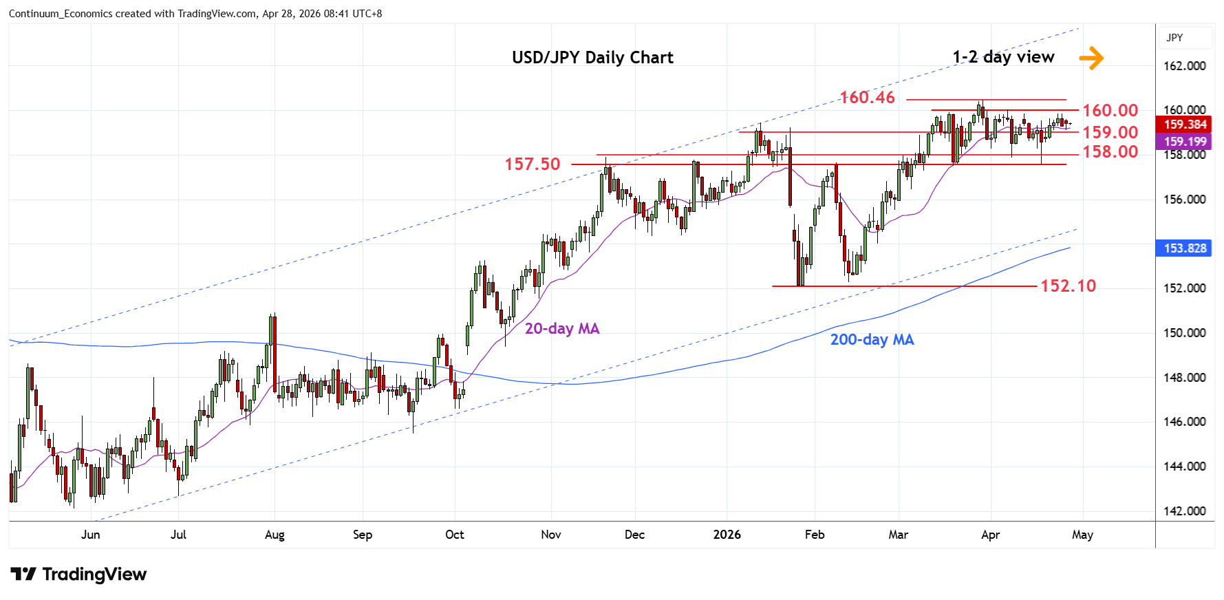 Chart USD/JPY Update: Extend consolidation below 160.00