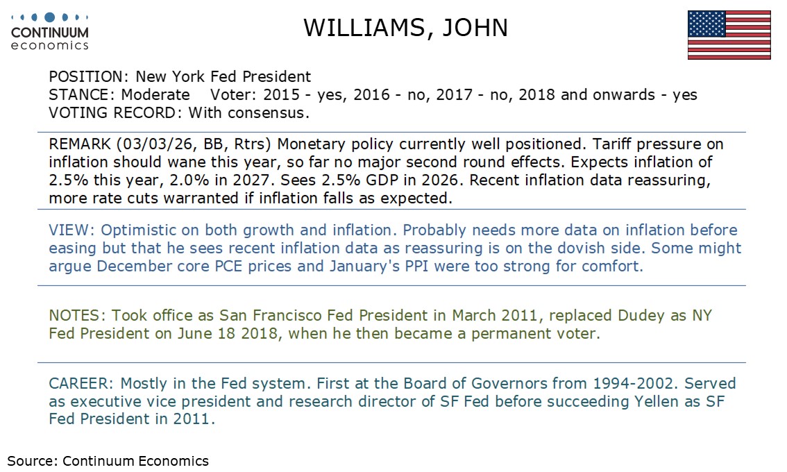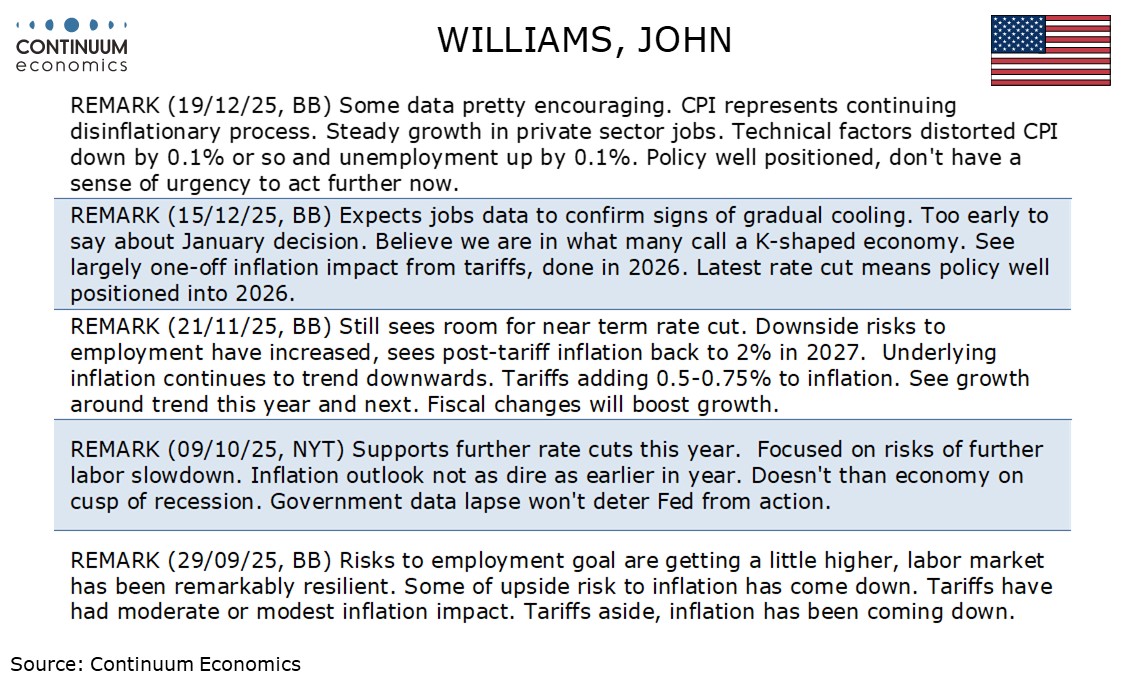 Fed's Williams remarks are on the dovish side, though not signaling imminent easing.