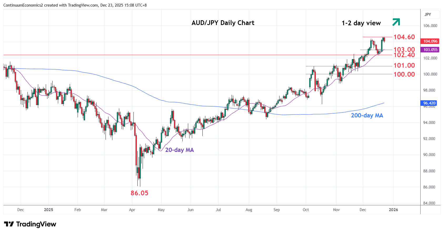 Chart AUD/JPY Update: Consolidating gains to 104.60 fresh year high