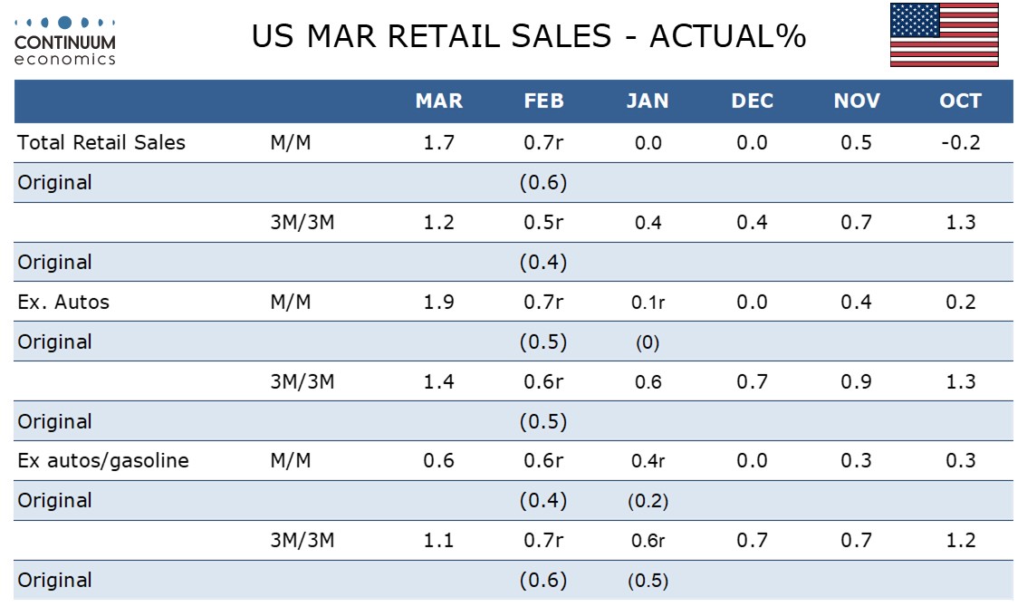 U.S. March Retail Sales - Underlying resilience, lower taxes may be helping