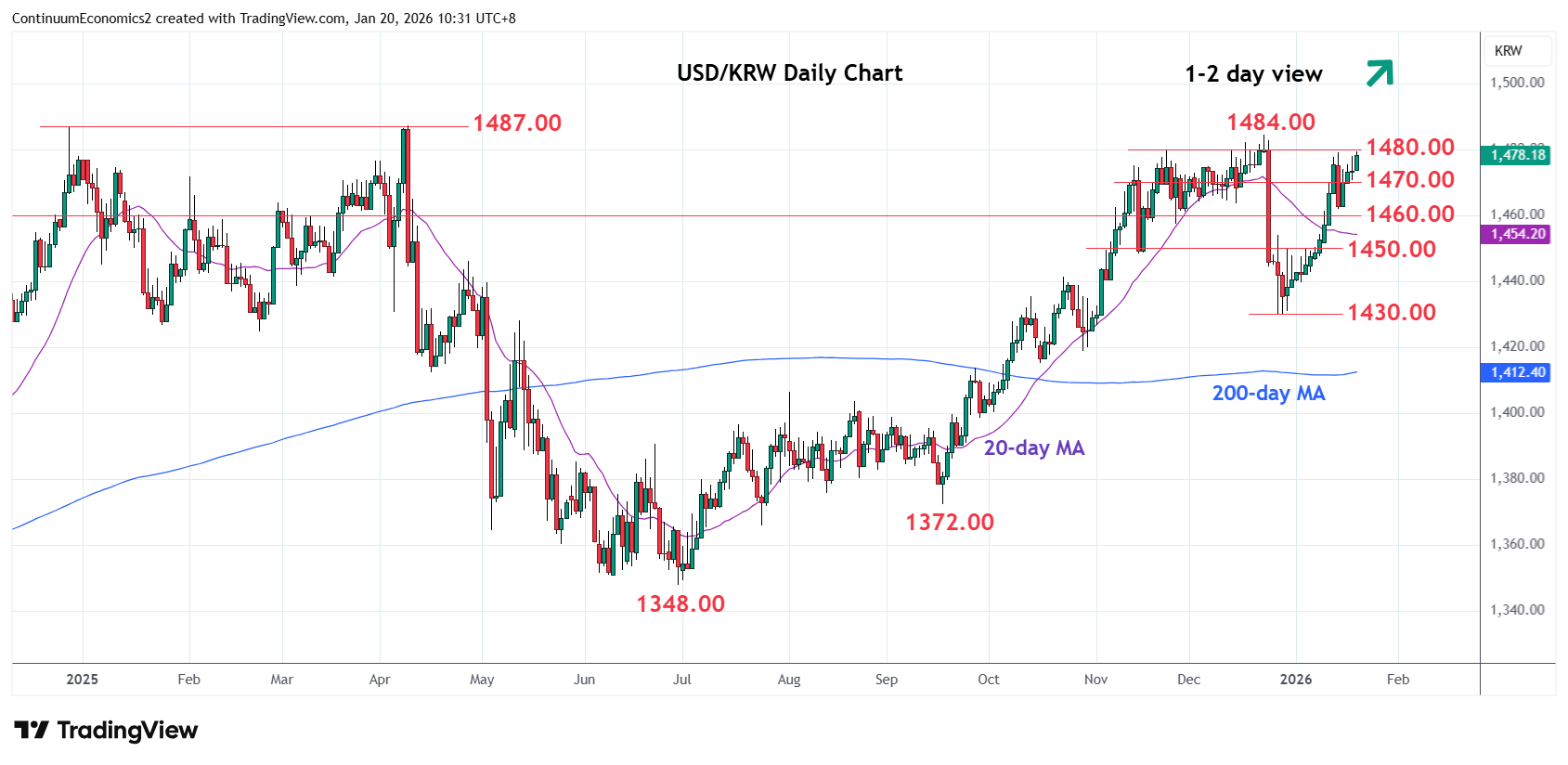 Chart USD/KRW Update: Back to pressure 1480.00/1484.00 highs