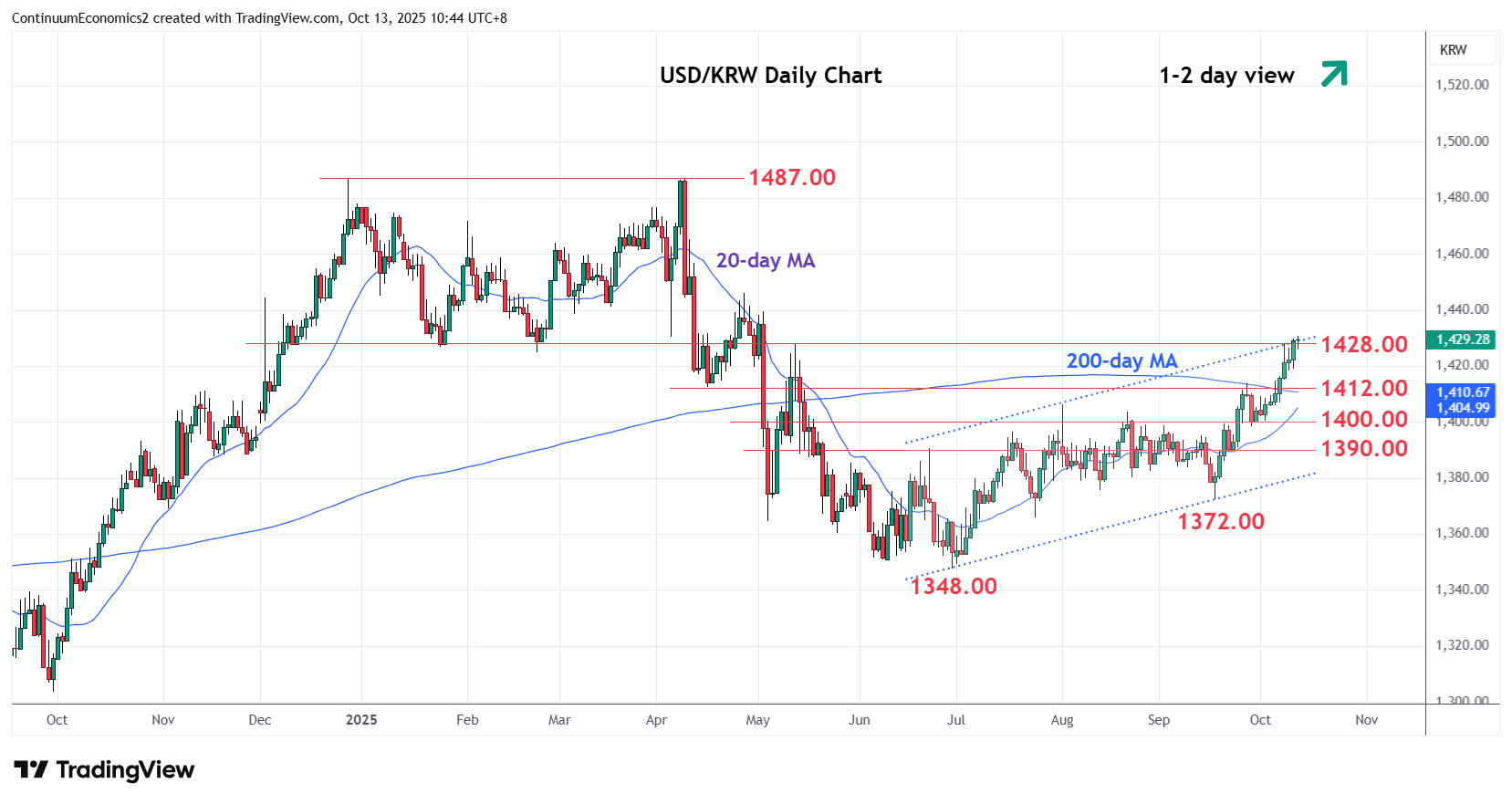 Break of resistance at the 1428.00 congestion see prices extending strong gains from the 1372.00 September low