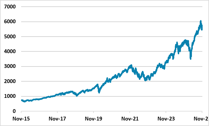 Overall, the AI story will likely become narrower in 2026 and 2027, as not all big AI/tech companies will generate clear revenue from areas outside cloud computing and semiconductor chips. Companies that are also dependent on external finance to meet AI investment could have more volatile times then the big cloud computing companies, especially by 2027. Though the wider AI story will remain, these issues could cause more selectivity, relative value trades and volatility in the AI story for the U.S. equity market, and at times could cause intermittent corrections in the S&P500. This is a market valuation question, as the broader AI story will likely lift productivity and U.S. GDP and produce wider benefits, with the key uncertainity whether this will be modest or moderate.
