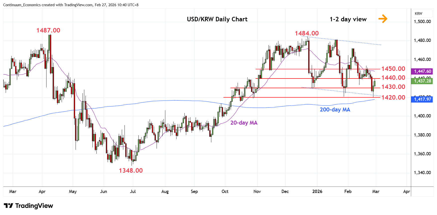 Chart USD/KRW Update: Extend corrective bounce from 1420.00