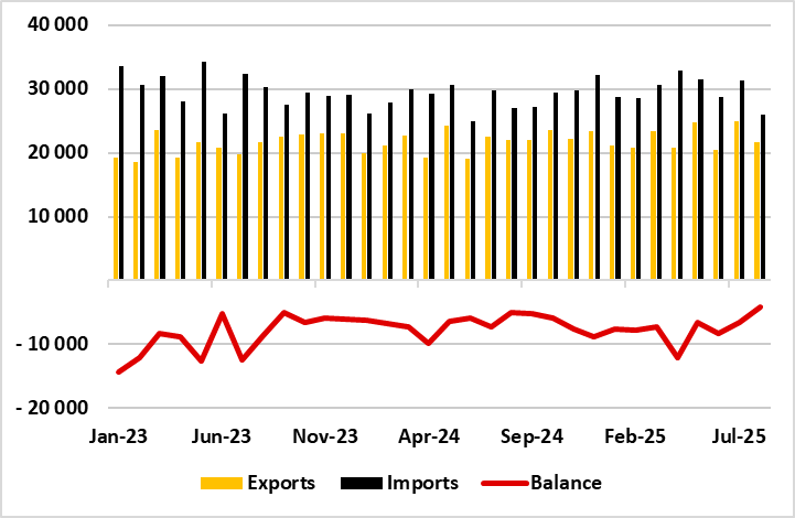 Figure 1: Turkish Foreign Trade (Million USD), January 2023 – August 2025