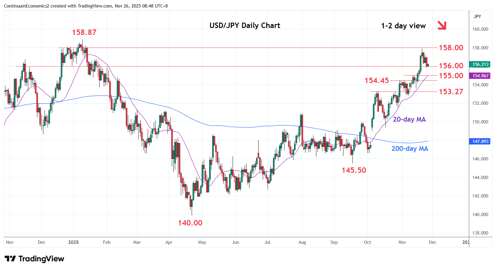 Chart USD/JPY Update: Consolidating at 156.00, room for lower later